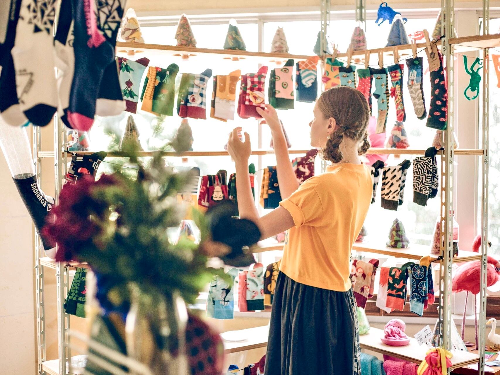 ユニークな左右非対称の柄と鮮やかな色使いが特徴で、コットンはポーランド製にこだわり、履き心地が良くカラフルなデザインは、「たくさんの良い朝」が迎えられるようにという願いで商品を展開しています。