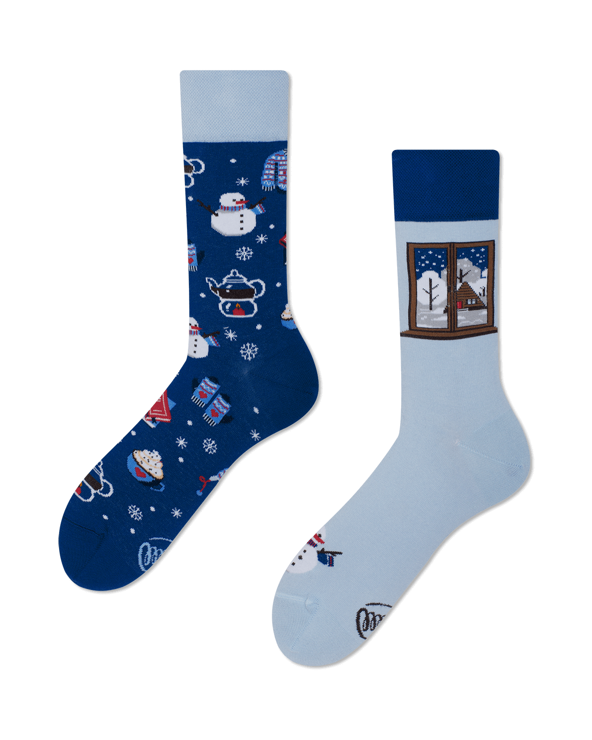 靴下 くつした くつ下 ソックス 柄ソックス 柄靴下 カラフル 個性的 派手 ハデ 柄 模様 モチーフ アシンメトリー 左右非対称 左右違う 大人カジュアル アート ユニセックス ハッピーソックス メニーモーニングス asymmetry mismatched colorful socks poland チャリティー 寄付 サスティナブル サステナブル アニマルライツ 冬 雪 ウィンター スノー 街 家 猫 snow town cat