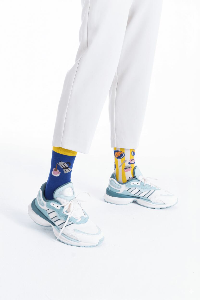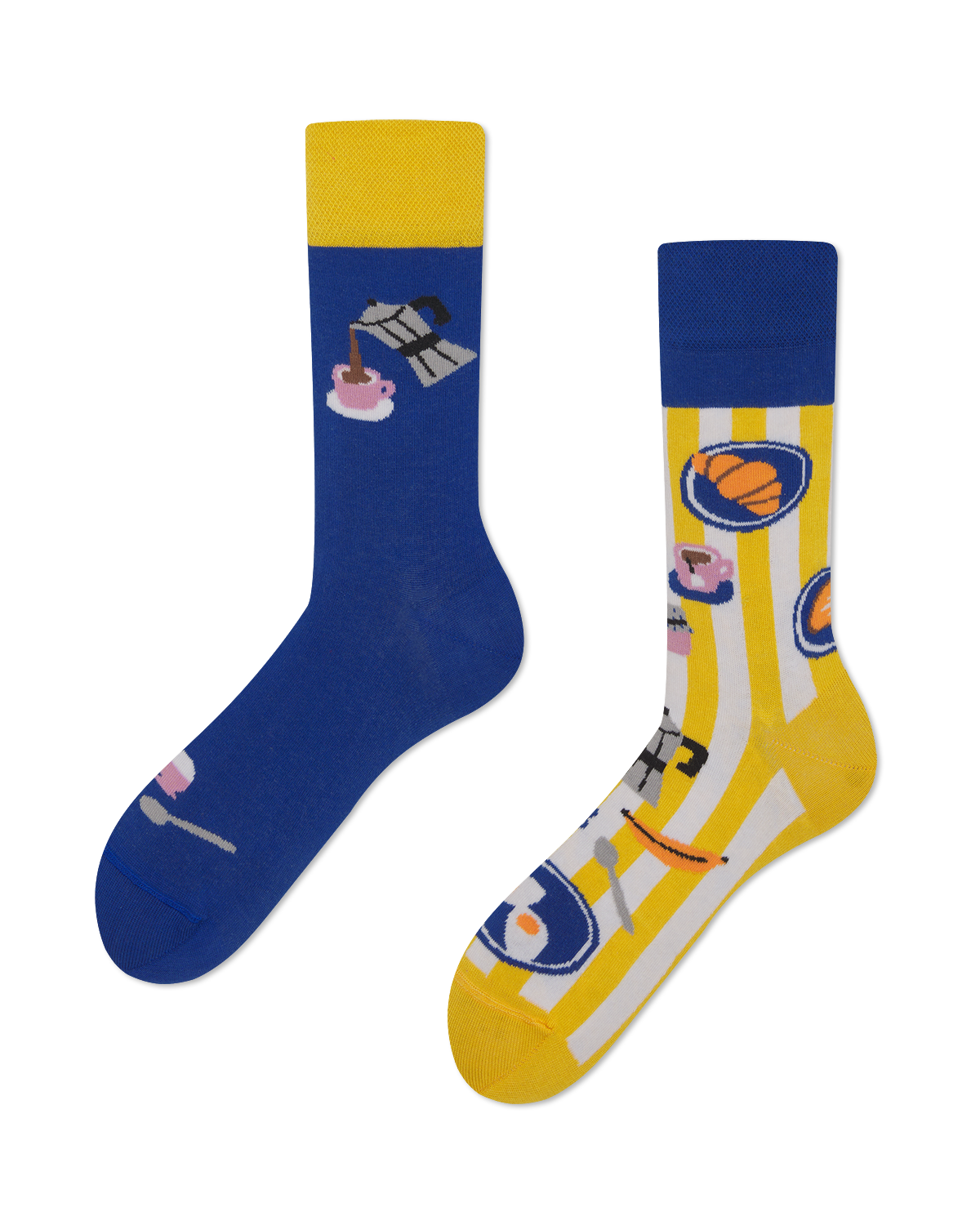 靴下 くつした くつ下 ソックス 柄ソックス 柄靴下 カラフル 個性的 派手 ハデ 柄 模様 モチーフ アシンメトリー 左右非対称 左右違う 大人カジュアル アート ユニセックス ハッピーソックス メニーモーニングス asymmetry mismatched colorful socks poland チャリティー 寄付 サスティナブル サステナブル アニマルライツ エシカル 動物 食べ物 趣味 アート アーティスト イラスト 朝食 パン クロワッサン ゆで卵 コーヒー エスプレッソ ブレッド モーニング food bread croissant coffee egg morning