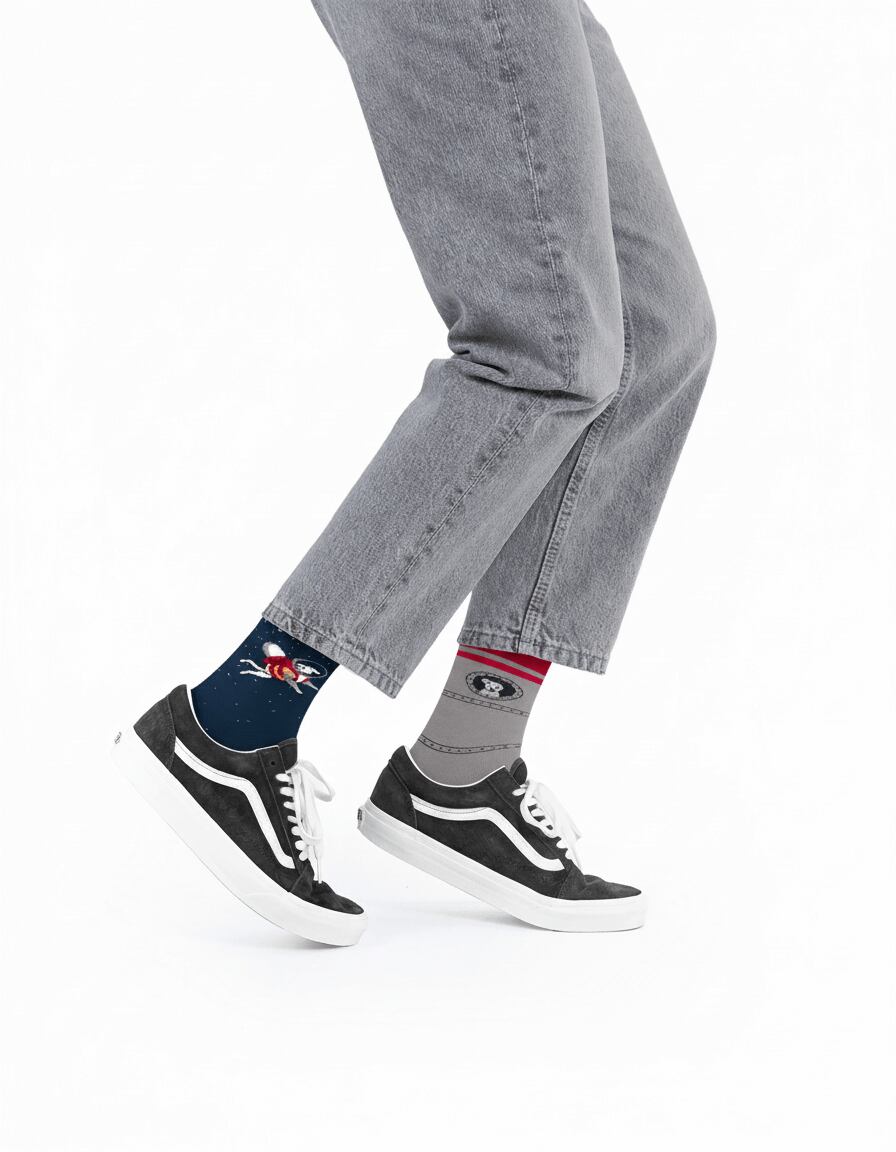 靴下 くつした くつ下 ソックス 柄ソックス 柄靴下 カラフル 個性的 派手 ハデ 柄 模様 モチーフ アシンメトリー 左右非対称 左右違う 大人カジュアル アート ユニセックス ハッピーソックス メニーモーニングス asymmetry mismatched colorful socks poland チャリティー 寄付 サスティナブル サステナブル 宇宙 星空 ロケット スペースシャトル 宇宙飛行士 ライカ 犬 ドッグ dog space rocket shuttle planet starry sky cosmo