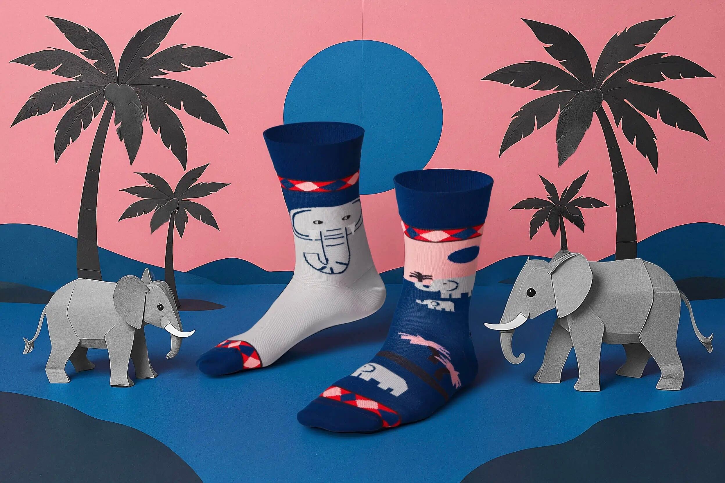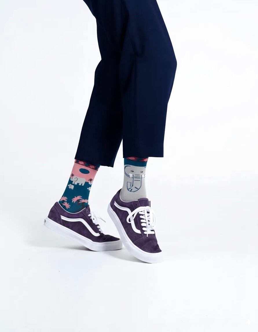 靴下 くつした くつ下 ソックス 柄ソックス 柄靴下 カラフル 個性的 派手 ハデ 柄 模様 モチーフ アシンメトリー 左右非対称 左右違う 大人カジュアル アート ユニセックス ハッピーソックス メニーモーニングス asymmetry mismatched colorful socks poland チャリティー 寄付 サスティナブル サステナブル アニマルライツ ズー ゾウ ぞう エレファント 象 アニマル柄 animal