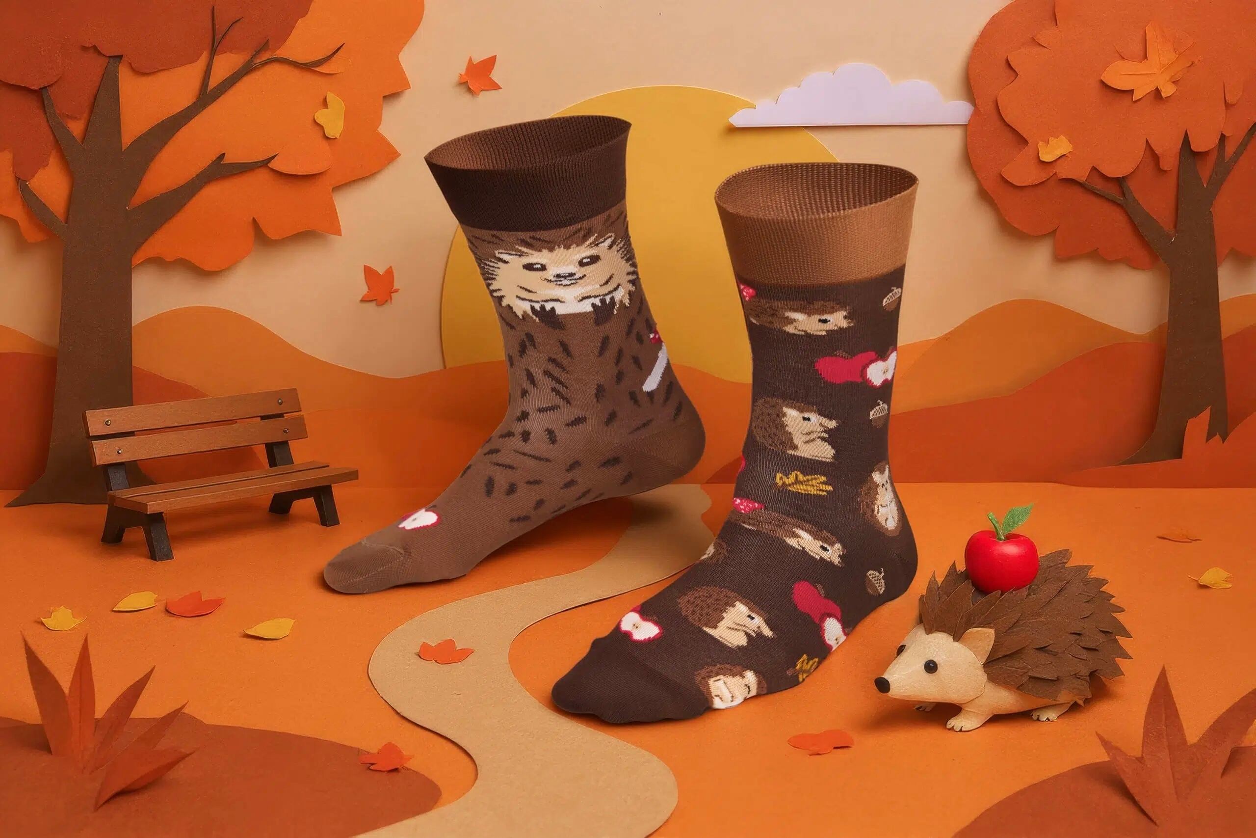 靴下 くつした くつ下 ソックス 柄ソックス 柄靴下 カラフル 個性的 派手 ハデ 柄 模様 モチーフ アシンメトリー 左右非対称 左右違う 大人カジュアル アート ユニセックス ハッピーソックス メニーモーニングス asymmetry mismatched colorful socks poland チャリティー 寄付 サスティナブル サステナブル アニマルライツ エシカル 動物 食べ物 趣味 アート アーティスト 絵画 スポーツ 季節 秋 紅葉 林檎 りんご ハリネズミ はりねずみ 針鼠 animal Apple Autumn