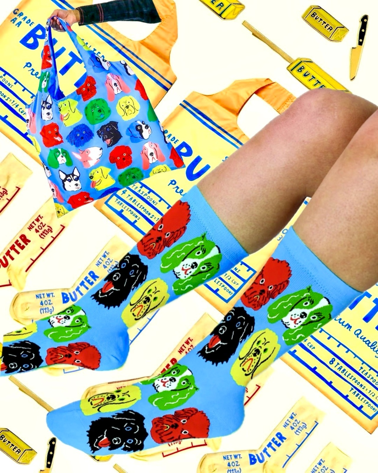 日常のモチーフをユーモアたっぷりに描いたデザインは、まるでアート作品を身につけているような感覚。