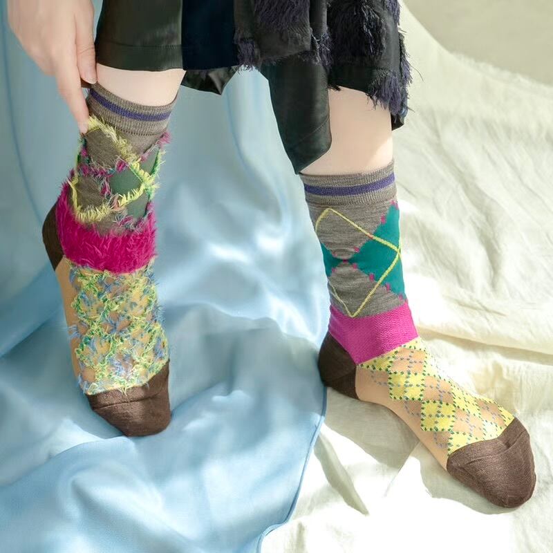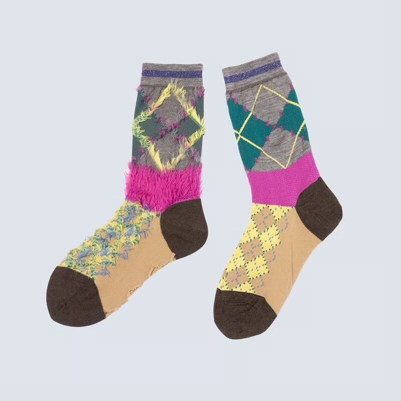 < COQ > リバーシブル靴下 Kitsune argyle|ピンク / 日本
