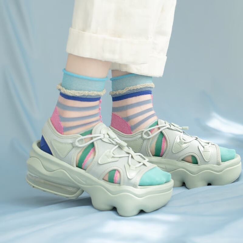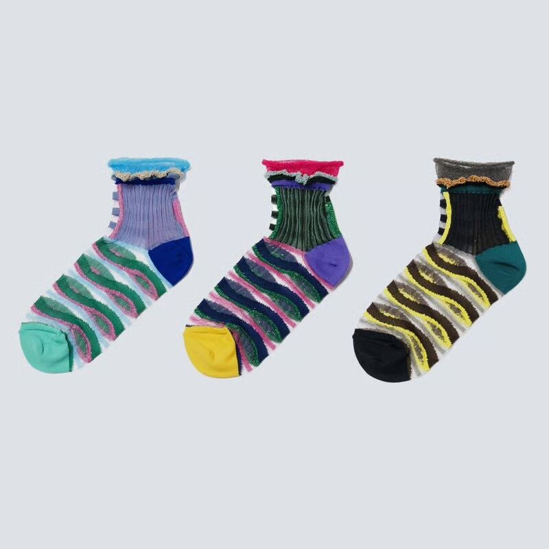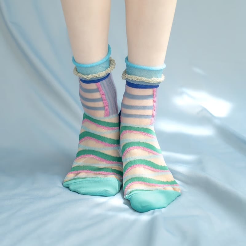 < COQ > シアー靴下 WAVE ECHO|スカイブルー / 日本