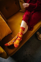 ユニークな左右非対称の柄と鮮やかな色使いが特徴で、コットンはポーランド製にこだわり、履き心地が良くカラフルなデザインは、「たくさんの良い朝」が迎えられるようにという願いで商品を展開しています。