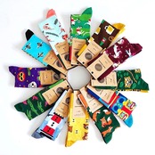 靴下 くつした くつ下 ソックス 柄ソックス 柄靴下 カラフル 個性的 派手 ハデ 柄 模様 モチーフ アシンメトリー 左右非対称 左右違う 大人カジュアル アート ユニセックス ハッピーソックス メニーモーニングス asymmetry mismatched colorful socks poland チャリティー 寄付 サスティナブル サステナブル アニマルライツ 動物 動物好き 秋 紅葉 リス りす 木の実 どんぐり animal autumn fall